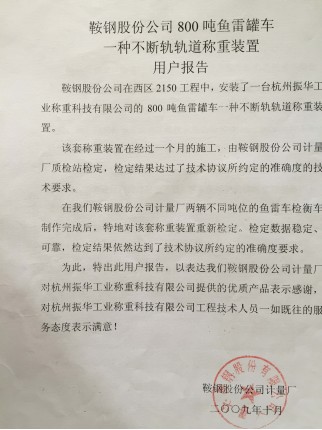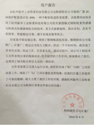杭州振华工业称重科技有限公司自成立以来,为众多的钢铁、冶金、焦化、火力发电、铁路、研究院(所)等单位所研制设计制造的各类计量新产品、联合开发与联合开发的项目,应用效果明显,就是对新老用户的产品选型、质量保障的最佳承诺!